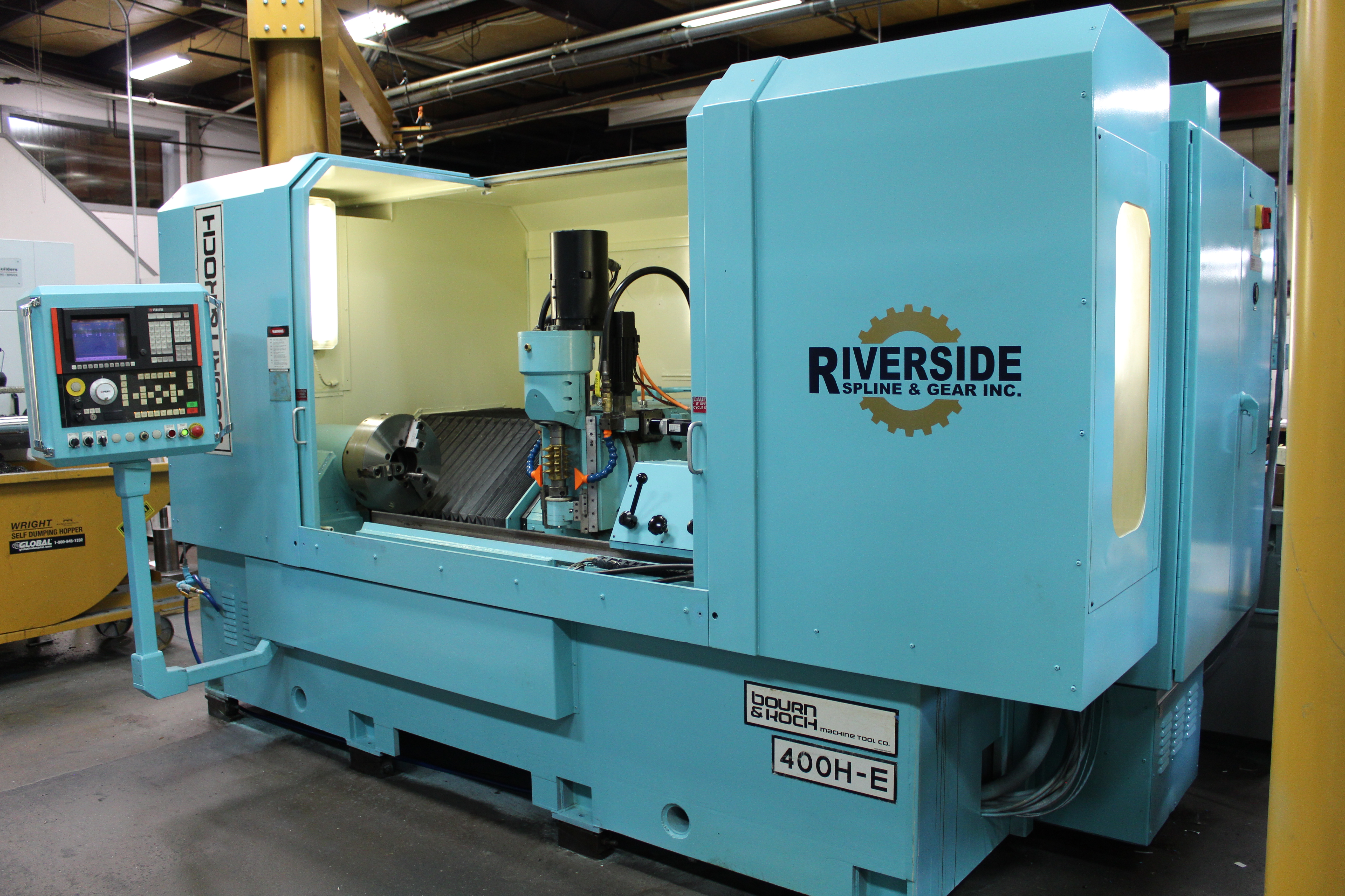 Riverside Spline & Gear announces the purchase and installation of our newest Bourn & Koch. This hobber is a 400H-E with extended cut length. The machine can accommodate an 80” shaft and has a cutting length of 74”.